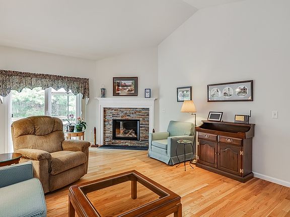 Pristine one level Franklin model built w/ finished lower level. Located in the award-winning Pinehills Great Island 55+ neighborhood. Hardwood flooring throughout the 1st floor. Spacious kitchen w/ 42" cherry cabinetry, stainless appliances, pantry & sunny eat-in area w/ large bay window. Living room, new gas fireplace & mantel. Slider from living room opens to the spacious deck & stairs to lower level patio, gardens w/ blueberry bushes. Primary bedroom suite w/ tray ceiling & hardwood flooring. Glass door leads to lower level w/ 3 year young carpet in great room, bonus room w/ closet. Slider to outdoor patio. Storage area w/ painted floor & utility sink, 2015 water heater, large April Air humidifier, alarm system, 2023 washer & dryer. Garage w/ painted walls & resin floor w/ lifetime warranty. The biggest highlight are the owned SOLAR PANELS! No electric bills! Alarm System & drip irrigation. Neighborhood clubhouse w/ outdoor Bocce, Pickle Ball, indoor pool, jacuzzi, billiards...