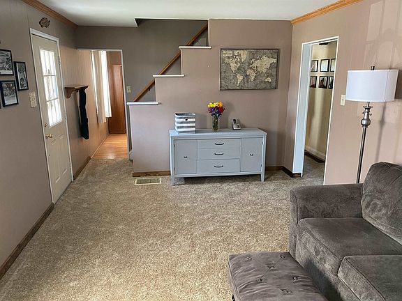 USDA Rural Housing area with NO MONEY DOWN & no PMI for qualified buyers. Cute & quaint 3 bedroom cape cod in Cul-De-Sac. Spacious kitchen/dining room open concept. Kitchen & laundry appliances included in sale. New carpet throughout 2021. HVAC 2016, Roof 2009. Spacious Lower Level area could be finished for additional living space. Waterproofing w/sump pump installed 2021. Lifetime transferrable warranty. Large rear deck & patio for entertaining & outdoor living. Nice sized yard for play and room for a garden. Wonderful neighborhood. City Park near.