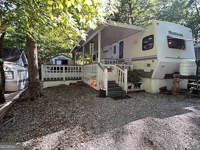 Affordable Mountain Getaway in Brookside Campground - Just $74,000! 1 Bed | 1 Bath | Cleveland / Helen / Dahlonega Area Your perfect weekend escape is ready and waiting in the popular Brookside Campground community! This updated, move-in-ready Country/Rustic retreat offers the ideal base camp for vacations, seasonal stays, and relaxing mountain downtime. Property Highlights Fresh updates including new flooring Spacious deck-great for grilling, gathering, or enjoying peaceful evenings Large outbuilding for storing all your recreational gear Washer & dryer included Single-level layout. Low-maintenance construction with vinyl siding and metal roof Parking pad with room for two vehicles Community & Location Amenities include pool, clubhouse, and playground Easy walk to the trout stream-ideal for fishing and nature lovers Minutes from Helen, Cleveland, and Dahlonega Close to multiple local vineyards, hiking trails, and mountain attractions Beautiful mountain views throughout the community Utilities & Features Public & shared well water; public sewer Central air & electric heating Cable, water, sewer, and trash services available HOA: $330/year, includes water, sewer, trash, swimming, maintenance of grounds & private roads