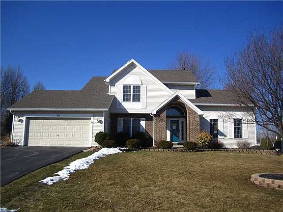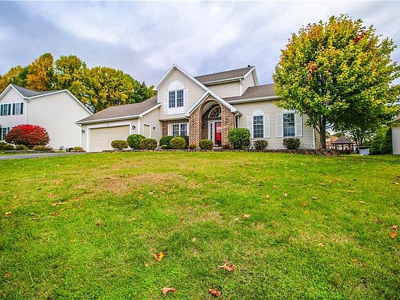 Gorgeous colonial on a peaceful street. A paver sidewalk leads you through the front to a large 2 story entryway. Off the entry you will find a massive family room with vaulted ceilings, new luxury vinyl plank flooring and a gas fireplace perfect for long cold nights. The eat in kitchen will make all your cooking a breeze. From the pantry to the breakfast bar and newer stainless appliances, you will have all the space you could need. Along with a formal dining room awaiting all your entertaining needs. Plus, a 1st floor laundry and half bath for added convenience. A finished basement offers extra living space with built in shelves, plus there is plenty of storage room in the unfinished section. Upstairs there are 3 bedrooms, including a master suite with a full bath and 3 large closets. Head outside from the new sliding glass door to enjoy a Trex deck with an above ground pool and a lower level patio. You will love spending all your summers out there. 2 car garage and double wide driveway! Central air, vinyl siding and vinyl windows round out this amazing home. This great neighborhood also features a scenic pond and walking trails. Come fall in love today!