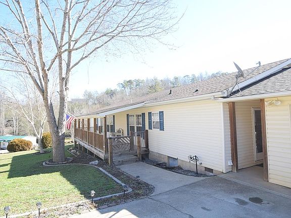 Wow!! This remarkable modular home is ready to go with so much to offer! Large living space with a family room AND living room area to enjoy! Three bedrooms and a bonus room with an oversized kitchen! Large master bedroom w/ensuite. All rooms boast walk-in closet space. Oversized laundry area/mud room. Walk out of the laundry area to the humongous 24x32/ 3 car garage; a woodworker's; car/motorcycle collector's dream/mancave!!! Owners have lovingly updated this home with laminate wood flooring, new paint, landscaping; and they even put in an extra parking gravel pad for your guests/family to have a place to park when visiting which can hold up to 6 vehicles! Large back deck for entertaining and a covered front porch with gutters to enjoy summer days. Nice yard space to enjoy and a built in fire pit in the back yard deck. Cell service and internet available here through Zito. Only about 2 minutes to downtown Bryson.