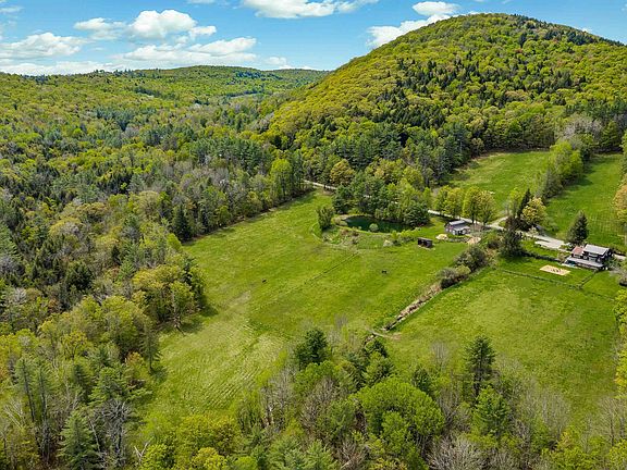 This impressive 1972 home sits on 9.05+/- acres and offers a variety of attractive features such as exquisite landscaping, swimming pond, a four-stall barn, a run-in shed, and captivating hillside views. The construction quality and meticulous attention to detail are exceptional. The main level of the house features a spacious dining room with large windows that provide year-round views, a generous living room with a cozy fireplace and wood stove for warmth during winter nights. The efficient kitchen is equipped with stainless steel appliances, and there is also a den/office, a bedroom, and a bathroom on this floor. Upstairs, the primary bedroom is oversized and includes a walk-in cedar closet, two additional bedrooms, along with a full bathroom. The lower level of the house offers a separate apartment with a full kitchen, a bathroom, a spacious living room, and a bedroom, which has proven to be a successful income-generating addition to the property. The property also includes a 30X36 horse barn with four stalls, rubber mat flooring, electricity, water, a tack room, and a hay mow that can store 400 bales of hay. The seven fenced acres with three pastures provide ample grass for rotational grazing during the summer months. Conveniently located within walking distance of Coburns General Store, The Edible Pocket Park, Newton School, public tennis courts, and Harrington Hill rope tow. Additional acreage available see MLS #4953057