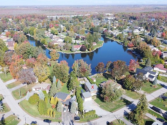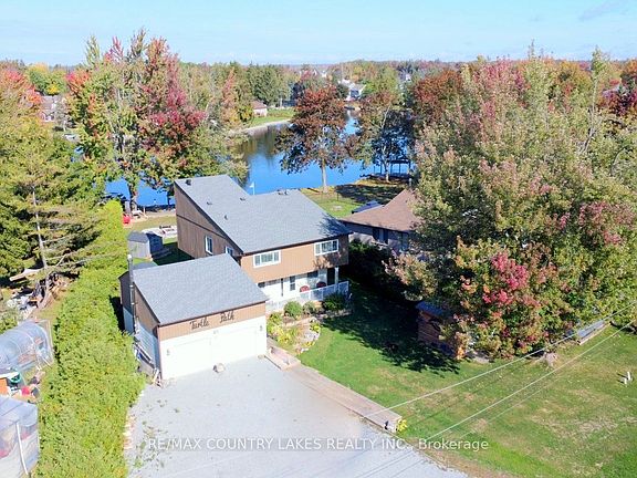 Charming 3-bdrm, 2-bath home perfectly situated on a picturesque pie-shaped lot with 50 feet of canal frontage and direct boating access to Lake Simcoe. Enjoy waterfront living at its finest with a large shoreline deck, gazebo and firepit, ideal for relaxing or entertaining by the water. The open-concept main floor features a bright kitchen with a convenient pantry, a spacious living and dining area with walkouts to a covered rear deck overlooking the canal, and main floor laundry for added convenience. Upstairs, you'll find a spacious primary suite complete with a walk-in closet. The family room boasts soaring vaulted ceilings, while the adjoining exercise room and sunroom offer stunning water views, creating the perfect space for family gatherings or quiet retreats. Additional highlights include municipal services (water, and sewer) a detached double car garage featuring a spiral staircase leading up to a loft games room with a pool table. Located within walking distance to Lagoon City's private sandy beach, Community Centre, and local restaurants, this home offers the perfect blend of comfort, convenience, and lakeside charm.