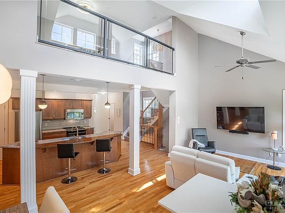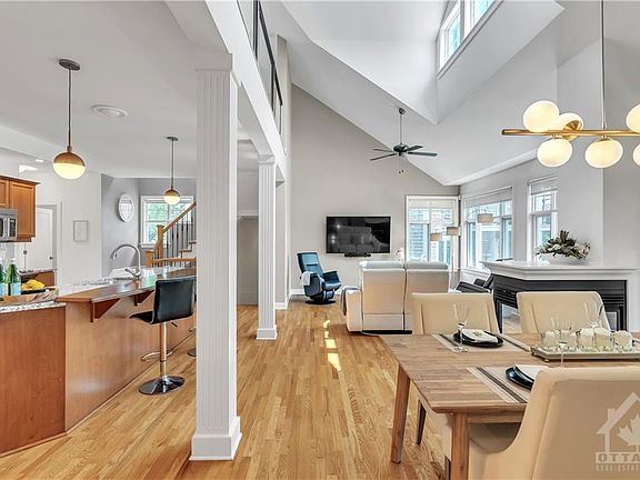 Discover refined living, this exquisite end unit bungalow w/ loft backs onto a small creek w/ no rear neighbours, nestled in Kanata's serene exclusive Marshes Village. Featuring Spacious layout w/ high ceilings, hardwood flooring & abundant natural light. Elegant design w/ upscale finishes & gourmet kitchen perfect for entertaining. Luxurious master suite w/ walk-in closet & newly renovated ensuite bath featuring heated tile floors & spacious walk in shower. Unique versatile loft space ideal for office, art studio or bedroom, w/ private ensuite bathroom & walk-in closet. Enjoy the privacy of the screened in porch overlooking your picturesque private yard. (furnace 2023, freshly painted 2023, entrance tiled 2024, powder room update 2024, ensuite bathroom 2024, new pot-lights and lighting 2024, loft opened up w/ glass banister 2024, LVP in loft 2024, wardrobes in office 2024) Experience the epitome of luxury living in Kanata.