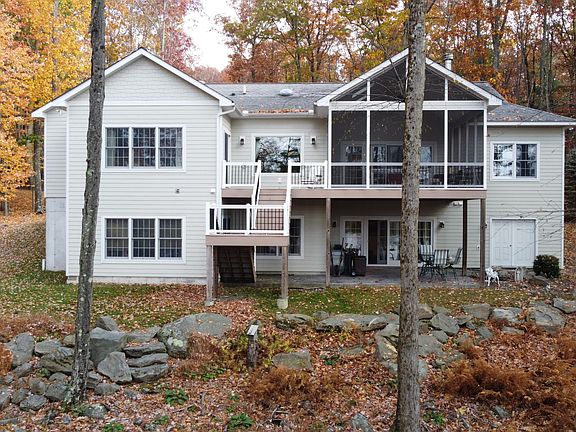 When only the best will do for you and your family! LAKEFRONT AND ACREAGE!! Dakan built dream home on Lake Claire. 9.6 Secluded acres, this charmer has over 200 feet of lake frontage. Built to perfection with 3 bedrooms and 2 large offices. Open floor plan with beautiful foyer, hardwood flooring, floor to ceiling stone faced wood burning fireplace and enormous screened room to enjoy the setting sun off the lake in the evening. Ultra modern kitchen with island and dining nook with expansive window to gaze at the lake. Master suite with two walk in closets, jetted tub, walk in tiled shower. Slider out to a private deck and more great windows to enjoy nature. Finished lower level with family room including a massive bar, and sliders out to the patio and path to lake. Plenty of storage