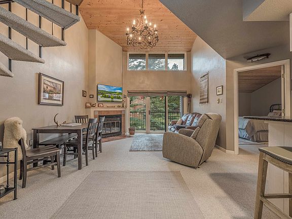 Tired of looking at condos that are dark with low ceilings and no dining area, elevator, or covered parking? Look no further. This two bedroom, two bathroom condo in the highly sought after Mountain Spirit complex is located within walking distance from the Angel Fire Resort Ski Area, Mountain Bike Park, and restaurants. The large living area has a two-story vaulted ceiling with 2nd story windows flooding the open-concept great room with light. There is plenty of space for a dining area plus bar seating, and a private patio for enjoying the fresh mountain air. The kitchen has been completely updated. The primary bedroom and a remodeled full bathroom with a large vanity and shower/tub combo complete the main floor. The lofted guest bedroom includes a large closet and the second full bathroom has a large vanity and shower/tub combo. The Mountain Spirit complex includes a parking garage, secured rooms with ski lockers and bike storage, and laundry facilities. Located within a 5 minute drive to the Angel Fire Resort Country Club and Golf Course and even closer to Frontier Park and Lowe s grocery store. Fully furnished.