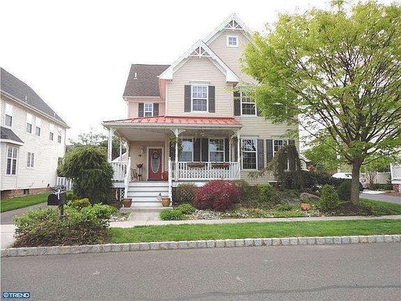 Come and See this Beautifully Maintained 12 year old, Cherry Alternate Model, 3 bedrooms, 2 1/2 baths, Victorian Home with wrap around front porch located in the desirable Ivyland Village subdivision. This home features a fantastic open floor plan with 9 ft. ceilings, 2 zoned surround sound system and crown moldings on the 1st floor. On the main level you will also find natural hardwood flooring throughout, foyer, powder room, family room, kitchen and the sunroom. Spacious Living Room with a ceiling fan and Dining Rooms w/upgraded carpeting and a lot of windows for natural sunlight, Laundry room has utility sink and storage closet, the kitchen offers maple raised panel 42" cabinets with crown molding, recessed lighting, extra deep sink, stainless steel appliances and center island with decorative suspended lighting, the family room has a gas fireplace with upgraded mantel and a ceiling fan, the well lit sunroom with slider door leads to one of the quaint back covered porches that overlooks the breath taking shrubbery & flower gardens. Lower Level: Finished Gathering room, great for entertaining along with an exercise area, hobby area and storage room as well. Upper Level: Sprawling Master Suite with tray ceiling, double door entry and a large walk in closet, upgraded master bath with frameless shower, ceramic tile, simulated wood tile flooring, corner soaking tub, 2 vanities and a separate water closet, 2 additional nice size bedrooms and a hall bath and hall linen closet. Outback offers a 2 car detached garage with auto openers, white picket fencing and 3 gates, paver patio, 2 covered porches, scenic gardens with lighting and a fountain for those relaxing summer nights. Other amenities include: gas heat, central air, humidifier, trex decking, sprinkler system, 200 amp electrical, alarm system, basement water proofing package and custom wood blinds.