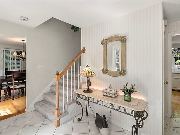 Perched on a knoll at the end of a cul de sac in popular Valleywood! Pride of ownership shines through w/original owners. Beautiful stonewalls/walkways greet you w/gardens to soak in. Many modern updates over the years (see list in MLS). The foyer is graced w/tiled floors, formal rooms on both sides. French doors into formal LR/Office w/new carpet. An expansive updated kitchen w/hardwood floors, quartz counters, SS appliances w/tiled backsplash under cabinet lights & bump out bay. Opens into the DR & Cathedral family room w/floor to ceiling field stone fireplace & egress to back deck that overlooks backyard & firepit! Second level original 4 Bdrm built converted to 3 larger Bdrms w/new carpet offers a cathedral primary suite, Palladian window, walk in closet. Cathedral updated primary bath w/skylight, custom tiled shower w/bench & built in linen closet & an updated main full bath. Lower level walk out bonus room w/built-ins & new carpet! Access to town trails~ New 4BDRM Septic System!