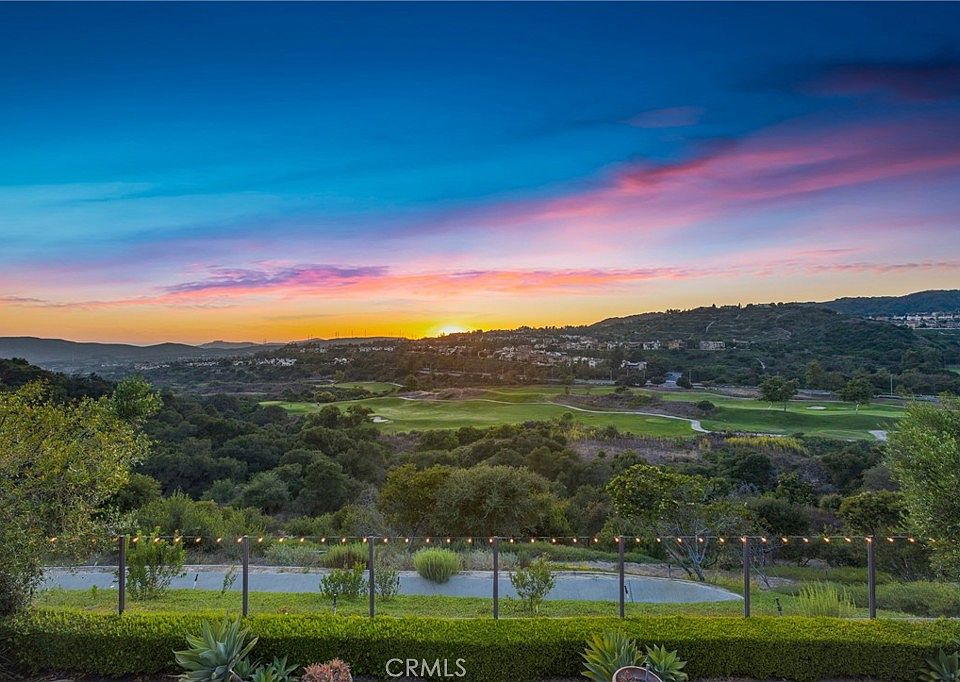 Premium lot on quiet cul-de-sac with beautiful panoramic sunset views of the golf course, hills and city lights. An entertainer's dream with a private backyard, custom spa and water feature, covered patio, built-in barbecue, bar, artificial turf, automated lighting and outdoor fireplace. Views are unmatched from this five bedroom, four bath home in the gated Talega community of Catania. A designer kitchen with stainless-steel appliances, dual-islands with modern white cabinetry, built-in refrigerator, six burner stove and fashionable granite and quartz countertops. An adjacent breakfast nook opens with French doors to the backyard. Enjoy the comfort of a large living room with fireplace and built-in entertainment center along with a formal dining room, bonus room and downstairs bedroom. The master bedroom includes a private balcony overlooking the canyon, an en suite bathroom with dual sinks, a soaking tub, separate shower and walk-in closet. Extensive crown molding, plantation shutters, custom window treatments & recessed lighting are throughout this exquisite home. Talega offers outstanding schools & amenities: 19 miles of hiking/biking trails, 4 community pools, clubhouse, sports courts, playground, lighted tennis, volleyball courts & nature reserve. The City of San Clemente has iconic beaches, a pier, shopping and amazing dining.