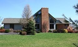 Custom built contemporary home with many energy saving features, cathedral ceilings, wood beams, masonry fireplace with heatilator and lots of windows to provide natural light. Large custom designed kitchen with maple cabinets, pull out shelves, large islandand semi-circular breakfast nook. 3BR 2.5BA; main-level master suite with uniqe loft; Hardwood floors throughout; JD lawn tractor and backup generator convey.