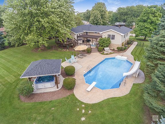 - Exterior Property Features: Porch, Storms/Screens, Hot Tub, Pool In-Ground, Stamped Concrete Patio, Deck