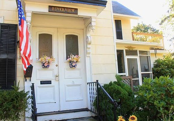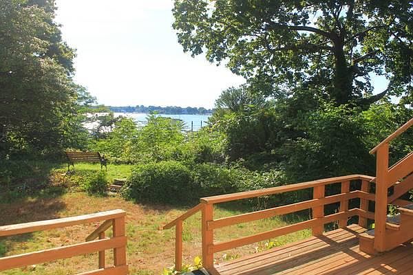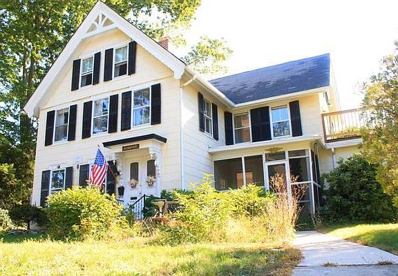 Historic West Mystic Avenue. Large 1,900 Sq Ft with 2 full baths, 2nd floor laundry, expansive rear yard overlooking the Mystic River, and detached 2 car garage. 1/2 mile, 10 minute walk to downtown. 4 bedrooms, living room, den/study, dining room, eat in kitchen, multi-use room, 2nd floor laundry area, screened in porch and 2 decks. Lots of original details, double front door with etched glass, mahogany stair railing, wide trim molding and porcelain door knobs throughout. First floor has large living room connected to den/study, 1 full bath along with central dining room and eat-in kitchen addition. Rear glass sliding doors exit to large back deck, and secondary front door opens to screened-in front porch. Kitchen has dishwasher, electric range/oven, and fridge. No disposal or built-in microwave. Second floor has two bedrooms, large hallway closet, central multi-purpose room (no closet) adjoining the second full bath, and separate finished storage/sink/laundry area that opens to second floor deck. (The stacked washer/dryer unit shown in the kitchen has been removed). Third floor has two bedrooms with closets and unfinished attic/storage area. House is connected to city water, sewer and natural gas. New gas furnace provides heating through steam radiators. New gas hot water heater. Tenant pays for all utilities except trash. Annual Lease subject to acceptable background check. Damage deposit required. Application required.