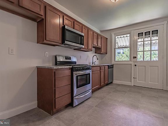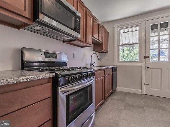 Renovated three bedroom end-unit rowhome on a corner lot in charming Marcus Hook is within walk distance of the train, with easy access to I-95,476, Market St, Philadelphia airport, Center City, Delaware, & NJ! Check out the huge fenced-in yard with storage shed ! Owner recently installed brand-new gas heater! The covered front porch leads to the bright foyer. The living room is spacious, with updated carpeting. The large dining room opens to kitchen. The remodeled kitchen boasts cherry cabinets, granite countertops, stainless steel stove, built-in microwave, & new dishwasher! The lovely bedrooms upstairs have hardwood floors underneath! Brand new central air! Enjoy the water views of the nearby park, and don't forget the borough of Marcus Hook is proudly referred to as "The Cornerstone of Pennsylvania".