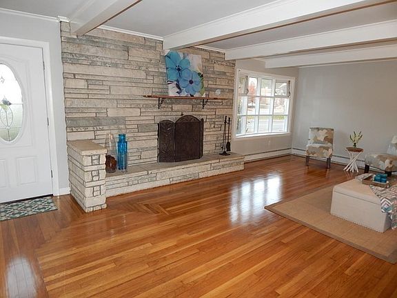 SPRAWLING THREE BEDROOM TWO BATH RANCH HAS FRESHLY PAINTED INTERIOR AND EXTERIOR WITH NEW 200 AMP ELECTRIC SERVICE AND TWO CAR GARAGE. THE SUN FILLED LIVING ROOM HAS BEAUTIFUL STONE FIREPLACE WITH HARDWOOD FLOORS AND BEAMED CEILING OPEN TO THE DINING ROOM BOTH WITH BAY WINDOWS. UPDATED MAPLE KITCHEN WITH STAINLESS STEEL APPLIANCES, CERAMIC TILE FLOOR AND LAUNDRY/PANTRY. THE FULL BATHROOM HAS UPDATED VANITY AND TILE TUB SURROUND. THE SECOND BATH HAS SHOWER STALL WITH TILE FLOOR AND UPDATED VANITY. ALL THREE BEDROOMS HAVE HARDWOOD FLOORS, DOUBLE CLOSETS AND NEW REPLACEMENT WINDOWS. THE LOWER LEVEL HAS LARGE FAMILY ROOM WITH FIREPLACE AND BAR. THERE IS PLENTY OF STORAGE ON THE UNFINISHED SIDE OF THE BASEMENT WITH EXTERIOR ACCESS TO BACK YARD. NICELY LANDSCAPED YARD WITH IRRIGATION SYSTEM.