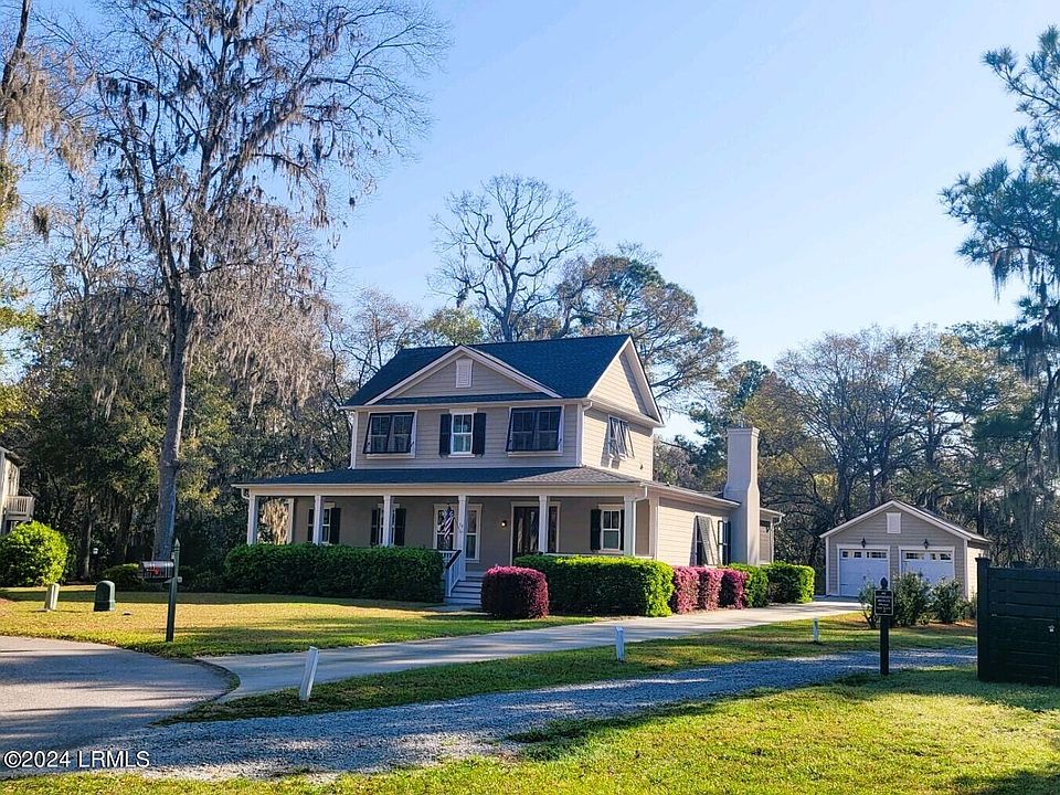 Exceedingly well-maintained 2844sf home on large .54 acre lot in beautiful, amenity-rich Coosaw Point. This lifestyle-friendly floor plan features a main floor owner's suite and guest bedroom, bright and inviting great room living/dining/kitchen, generous flex room for office, den or formal dining, plus a home office nook and enormous laundry / life of stuff room. Unfinished room on 2nd level could easily convert to an additional bedroom or flex room. Upgrades to this property include: Taexx contactless pest control system (distribution tubes in the exterior walls are used to spray insecticide into wall cavities without the techs needing access the inside of the house) https://pestdefense.com/taexx/; home theater pre-wire; granite countertops in kitchen, butlers pantry, laundry room and master bath; tray ceiling in foyer and master bedroom; Norman Window Fashions composite plantation shutters with invisible tilt; easily secured (close and go) hurricane rated storm shutters (combination of adjustable Bahama shutters and louvered colonial shutters) https://lowcountryshutters.com/; Brand new dishwasher (Oct. 2023); New washer (2022) and dryer (2018). Transferable homebuilders limited warranty expires 8-25-2025.