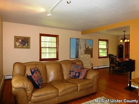 This homes' spacious and openingly flowing floor plan with windows and a large deck was designed to take advantage of the lofty trees and open sunny backyard that surround this peaceful and established "neighborhood" property. The interior of the house is warmed by a combination of glowing oak floors and artfully painted interiors. Once inside one is beckoned to feel comfortable and relaxed, whether enjoying the living room with its distinctive bluestone wall and fireplace, or meditating on the big bay window which opens the horizon to trees and sky. It's easy to settle into the other various private interior spaces depending upon your needs. There's an eat-in kitchen, as well as more formal dining room facing the sliding doors, which open to a large sunny deck and stairs leading down to the big backyard. The kitchen has updated oak cabinets, a new oven, dishwasher and microwave, plus great counter space to aid in making cooking a pleasure. A cozy office, studio, playroom or meditation space with sliders opens directly to the backyard. And who doesn't like a full basement as well as a two car garage.
