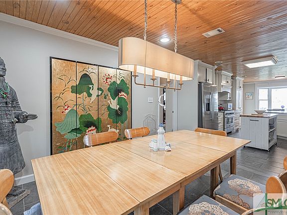 A rare find! Don’t miss this updated home on a secluded lot with stunning marsh views—just minutes from all the conveniences of Southside Savannah. Extensive renovations were done to the kitchen, living room, and primary bathroom approximately 8 years ago. Charming wood ceilings flow from the formal dining room into a spacious kitchen with ample counter space, an island, tile backsplash, impressive gas stove, and a breakfast area with breathtaking views. The large living room features a stacked stone fireplace, tray ceiling, built-in bookshelves, and a cozy bar. Even the office off the kitchen offers a view! The owner’s suite includes a wall of glass doors that flood the room with natural light and open to a full-width back deck. Outside, enjoy an enchanting garden—perfect for entertaining or relaxing. A generous storage area is tucked inside the 2-car garage. This is coastal living at its best: a peaceful setting, updated interior, and unbeatable location.