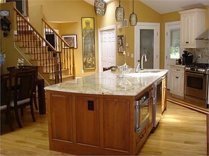 This beautiful, three bedroom, two and a half bath expanded ranch has been completely renovated and is perfect for today's living. A few of the many highlights include newly refinished oak floors with custom Brazilian and cherry inlays, a main level master suite with spa-inspired bath, and abundant windows and skylights, flooding the home with natural light. The open and airy kitchen has an over-sized granite island with stainless sink, integrated drawer-style microwave, wine fridge, and plentiful storage. The unique, octagon shaped family room flows seamlessly into the main living area. The heart of the home offers plenty of space for formal and casual dining and relaxation. The first floor master suite includes a walk-in closet, a set of double closets, and access to the deck. The master bath has a glass and tile steam shower, Bain Ultra air jetted tub, heated towel rack and radiant heated floors. The second floor is home to two additional bedrooms and jack and jill bath. The detached two car garage has built in storage units and an attic. When finished, this space would make a wonderful home gym, private home office or separate guest house. Large, dry concrete crawl space beneath the main house. This home is not located in a flood zone.