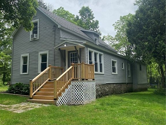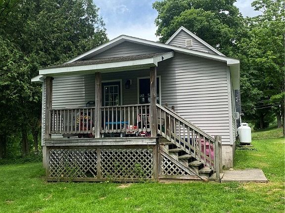Country setting in the Village with public water and sewer. 2-story charmer with updated kitchen and baths. Front foyer, living room and dining room. 1st floor bedroom used a primary suite but was formerly used as an in-law suite with full bath, walk-in closet, and separate entrance. Additional 3 bedrooms upstairs, 1st fl laundry, open front porch, covered rear porch overlooking the expansive lot and large barn.