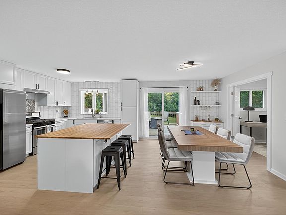Welcome to your completely renovated 4-bed, 3-bath dream home on 1 acre just outside city limits! Located in a peaceful, quiet neighborhood just minutes from city conveniences, this beautifully renovated property offers the perfect blend of modern upgrades and timeless charm, situated on a spacious one acre lot with mature trees and updated landscaping. Inside, you’ll find an open-concept living area featuring a stunning stone accent wall, beautiful new flooring throughout, and abundant natural light from bay windows and a cozy built-in window seat, perfect for reading or relaxing. The fully updated kitchen includes brand-new appliances, cabinets, a walk-in pantry, a convenient island, and an adorable window bump-out that adds extra charm and light. The dining area opens onto a brand-new deck, perfect for enjoying your morning coffee or evening BBQs. With four spacious bedrooms and three fully renovated bathrooms, each with gorgeous tilework, this home has room for everyone. The primary suite includes a luxurious ensuite bath for added privacy and comfort. The finished walk-out basement extends your living space with a cozy fireplace, kitchenette, large storage area, and a finished laundry room. Outside, enjoy a freshly painted exterior with stylish cedar shutters, a backyard shed, and a gravel side pad for extra parking. Additional highlights include: Attached 2-car garage with built-in storage cabinets, new air conditioner, water heater, and iron filtration system, new septic system installed in 2022. This home is truly move-in ready and offers the space, style, and setting you’ve been searching for.