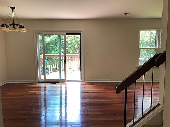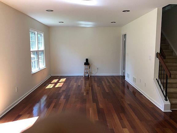 Hardwood in the living area; Tile in kitchen and bathrooms; Carpet upstairs and in basement