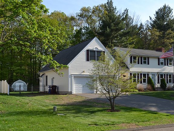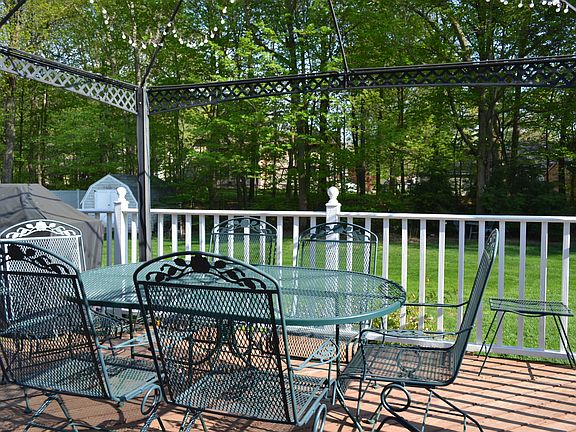 Must see, 9 room colonial, with 3,100 sq. ft. of living space including the finished basement. This beautiful home is move in ready, located on a cul de sac in a lovely neighborhood, with mature trees and landscaping. The home features 4 bedrooms, three fireplaces and an updated kitchen with two ovens, and quartz countertops. The adjoining family room, with cathedral ceilings, creates a wonderful open space for entertaining. French doors from the eat-in kitchen leads to a large deck. The front-to-back living room is warm and inviting. The dining room has wainscoting and is a great space to host gatherings. Washer and dryer are on the main floor in a full bathroom. Master bedroom has a large walk-in closet and a fireplace. The three other bedrooms are spacious with plenty of room for a growing family. The lower level is finished with a kitchenette. This house also features a large fenced in level yard and owner owned solar panels which you'll save substantially on lower electric bills making this an energy efficient home. The boiler was replaced this year with 5 zone oil heat, and updated 200 amp electrical panel, with transfer switch for a generator. This home has much to offer its next owner.