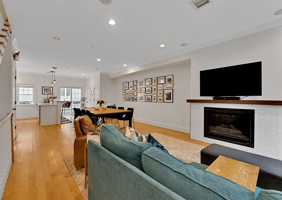 Incredibly rare 4 bedroom end unit townhouse with private 3 car heated garage and two decks in the heart of Southie. First floor boasts a massive open concept living/dining space with gourmet kitchen, 10 ft kitchen island, gas fireplace, room for a dining/pool table, renovated half bath, pantry and private deck. Second floor with laundry and 2 king size bedrooms, both with en-suite baths. Top floor completes the home with oversized primary suite with custom closet, second private deck, new spa-like bathroom with dual vanity, modern soaking tub, heated floors, large walk-in shower, and premium Toto “smart” toilet/bidet. The fourth bedroom has been designed as a multi-use room with a custom-built murphy bed, storage and desk system. Roof rights offer the potential to add a private roof deck. Heated driveway and garage. $100k+ improvements between 2020-2022: all bathrooms, tankless water heater, custom closet and Murphy bed system by California Closets, refrigerator.