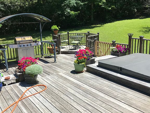 Lovely home in a quiet neighborhood recently renovated. Large den with fireplace and dark hardwood floors. Kitchen remodeled approx. 3 years ago. Fresh paint, new color schemes. Main floor: kitchen with island and granite counter top, 30x22 ft. den, large dining room, master suite with full bath, 2 additional bedrooms, 2 additional baths, laundry, storage, pantry, front porch, back screened porch with large split level deck and hot tub. Basement: bedroom, full bath, den, play area patio. We love to listen to the birds and drink coffee on the back screened porch. Plenty of space and a separate workshop/out building 40x30. New roof June 2018.
