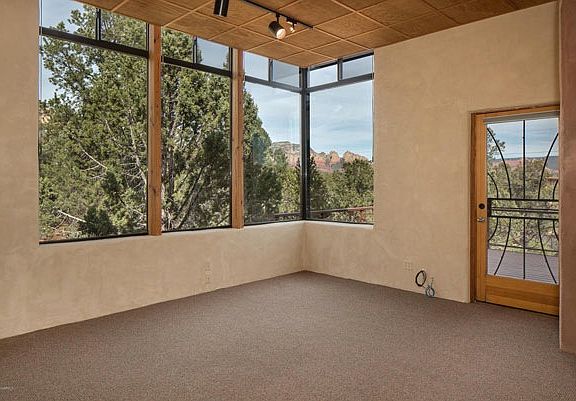 This 3041 sq/ft 3 bedroom/2 bath plus office with a 500 sq/ft work space in a separate building and all with Red Rock views blends Art, Nature and Functionality.A contemporary energy-efficient home was designed by Mike Bower of the Design Group. Located on .72 of a acre at the end of a cul-de-sac for privacy with West Sedona convenience. The interior features stained concrete floors, colored plaster and natural Red Rock walls, solid maple breakfast bar, and custom cherry cabinets. Fully fenced back yard and growing area with raised beds. One car garage and one car carport. $3100 plus utilities. Please call Rick with Sedona Sun Properties for an appointment to see. 1-928-300-8152 Sedona Sun Properties is an Equal Opportunity Rental Agency.