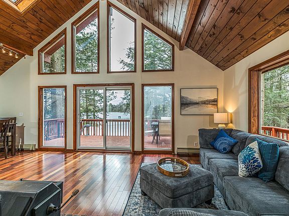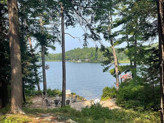 Nestled amidst the picturesque landscape of New Durham, NH, on Chalk Pond, 390 Birch Hill Road unveils a rare opportunity to embrace the tranquility of rural waterfront living without compromising modern comforts. This enchanting property is a harmonious blend of natural beauty and thoughtful design, promising a lifestyle of serenity and convenience. Step inside to discover warm and inviting living spaces and amazing views of the lake. From the open living/kitchen/dining area, multiple sleeping spaces and expansive decks you can view the beautiful water including a sandy beach and fire pit area. This year-round home is located 20 minutes to the Lake Winnipesaukee region and 30 minutes to Gunstock Ski area. Rental history can be provided which also makes this a great investment opportunity. Home to convey fully furnished less listed items. With beautiful light filled rooms and cozy woodstoves, this home has it all. Home has current rentals which have the option to convey and makes this a great affordable option for part time use and income!
