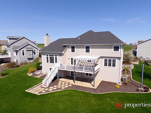 Stunning Panoramic Views of Geneva Lake from this custom built 4BR/2.5BA 2 story home within walking distance to downtown. Located in a quiet cul-de-sac this home features spacious great rm w/vaulted ceiling, FP & floor to ceiling windows overlooking lake, HW, open concept eat-in kit w/breakfast bar & SS appl, dining rm, main level office & family rm. Upper boasts Mstr suite w/ trayed ceiling, WIC & jetted tub/shower & 3 additional larger bedrooms. The walk out lower is ready to be finished. Professionally landscaped. Upper deck & lower patio are perfect spots to enjoy a summer day!