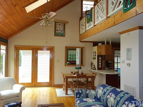 REDUCED $40K below appraisal! Waterfront and awesome lakeview with dock and buoy in place, custom designed home, hardwood floors on 1st floor, family room with cathedral ceiling, skylights & multiple windows showing the view of the lake, huge open dining room, breakfast area, kitchen with all major appliances, powder room for guests, upstairs 2 bedrooms & full bath. Enjoy relaxing on the screened porch & deck, double garage w/front and rear doors, detached storage building. Don't miss out on this home