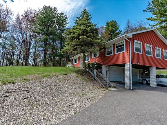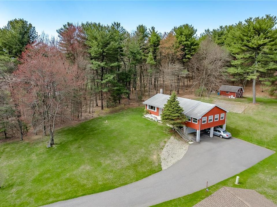 Well built and maintained Ranch sitting on a beautiful 1 acre lot with amazing country views! One floor living in this great Ranch home featuring large family and dining rooms with newer big bright windows, kitchen includes all appliances and good amount of cabinetry. 3 bedrooms with 3rd bedroom having been converted to main floor laundry room and 1/2 bath with the option of moving laundry to lower level. Main floor full bathroom in addition to a large enclosed patio to enjoy your summer evenings taking in the beautiful views! Lower level full basement with 2 garage bays, storage and workshop area. Outdoor utility shed, fully macadam driveway and private backyard are a plus. Hurry up and call today for your private showing!