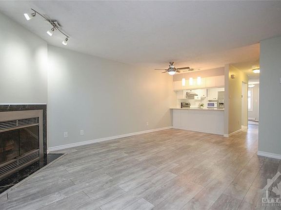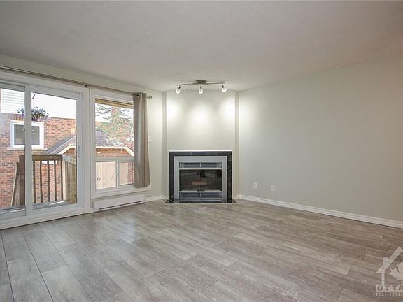 Affordable starter home or investment rental property, lower inside unit with two bedrooms and 1.5 baths. main level kitchen with white Glass Marble counter tops is open to dining and living areas with cozy wood burning fireplace. Attractive low maintenance laminate and vinyl flooring, newly carpeted stairs. Two well sized bedrooms , full bath and laundry / storage in lower level. Freshly painted, in pristine condition and move in ready for immediate occupancy. Rear deck off living room to rear yard and bar b que area. Convenient owned parking space immediately opposite front entrance with visitor parking nearby. Close to Manley Park and bike paths, south end Ottawa shopping and recreation.