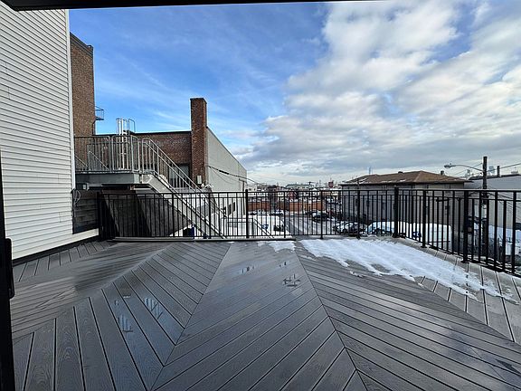 This newly renovated 2-bedroom, 2-bathroom apartment boasts high-end condo finishes and a private 500 sq ft deck with partial NYC views, accessible from the combined kitchen and living area. Modern amenities include a dishwasher, wine cooler, built-in microwave, and in-unit washer/dryer. The apartment features hardwood floors, custom kitchen and bathrooms with quartz countertops, and a pre-wired surround sound system in both the living room and on the deck. An outdoor natural gas hookup for grilling, along with hot and cold water and a drain, make the deck ideal for entertaining. This exceptional unit is expected to rent quickly. Owner is a licensed NJ real estate broker.