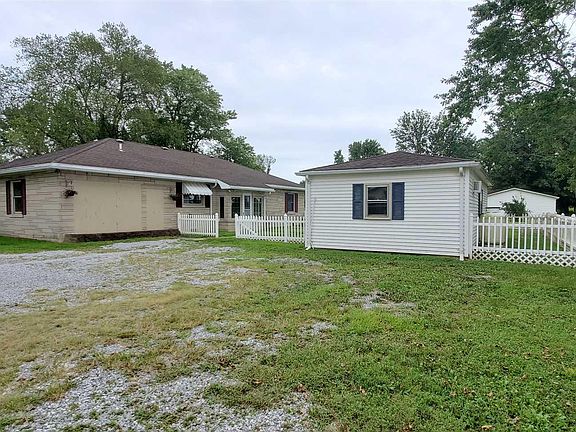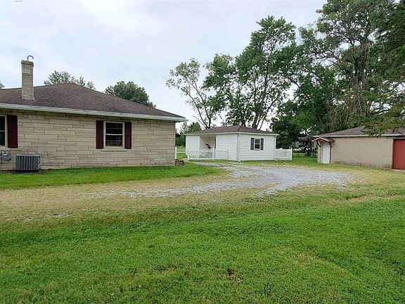 Out of Space? Check out this place! There is room for yours, mine and ours on this 2 acre lot! 3 different outbuildings can be mancave, she shed, home based business, room for pets, extra storage, or you name it! The 30x40 metal pole barn has electricity and a gravel floor. The 30x24 concrete block building has a sliding barn type door, concrete floors and electric. The 30x16 frame building has electricity, concrete floors, heat and air. The bedford stone ranch home has hardwood floors in the living room and 2 of the bedrooms. The owners suite is generous size and has a private bath with shower. The laundry room comes complete with washer and dryer. The kitchen and informal dining share the view from the large picture window facing the front of the house. The kitchen cabinetry has been updated, and the stove, dishwasher and refrigerator are included. There is a lovely inset front porch and a mud room from the back entrance. (interior photos coming soon) Playset does NOT PASS W SALE