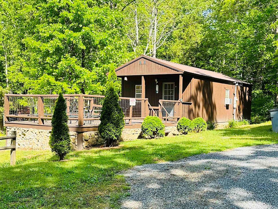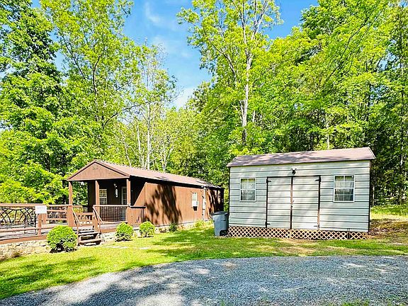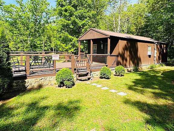 If you are looking for a home away from all the hustle and bustle of the city or just a weekend getaway, this is the one for you! Nestled back into 9.13 acres is this charming 34’X14’ tiny home with a large front porch to enjoy plenty of porch sitting and grilling while watching all the wildlife. This property includes a 36’X20’ barn and a 16’X10’ storage building. In the last year the cabin has been repainted with 10 year warranty paint, decking replaced, and the cabin pipes replaced with peck along with a new refrigerator, window AC, cast iron wood burning stove with the glass front to watch the flames on those cold nights, a new kitchen sink and 9 chestnut trees planted. This home comes furnished and also includes a 1979 ford tractor with bush hog, 5 ft disc, and a box blade attachment. All you have to do is bring your clothes and enjoy your time out in the country!