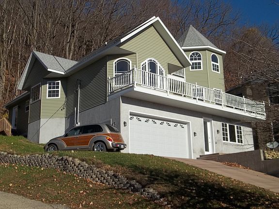 Beautiful Views - Mississippi River overlooking Lansing, at the foot of Mount Hosmer. Main Floor (2400 sq. ft.): hardwood floors. panoramic living room (with large walk-out deck), open kitchen & dining room, breakfast nook bay, pantry, laundry room (or bedroom) & bathroom; master bedroom suite with private sitting room; bathroom has his/hers walk-in closets & vanities, shower, & jacccuzi. Cathedral Attic (1500 sq. ft.): spacious open loft, bathroom, separate tower room, walk-out balcony. Two car heated garage with lots of additional storage areas. House includes a large 2-bedroom apartment for extra income, mother-in-law, combined family situation, or awesome man cave. Owner financing with flexible terms.