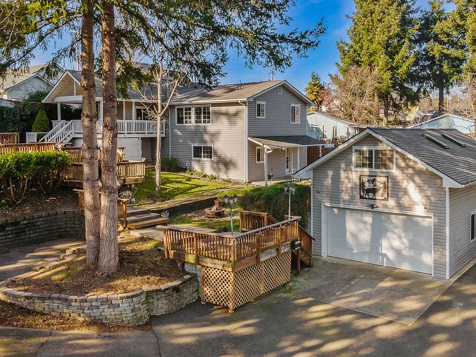 Located in a peaceful setting while still conveniently located in town, this charming 3-bedroom, 2-bathroom home offers a perfect blend of tranquility and convenience. Sitting on two tax lots totaling approximately 0.43 acres, this property provides plenty of room to live, play, and grow. Inside, the home features beautiful laminate flooring throughout the main level, adding both style and durability. The full lower-level primary suite offers privacy and comfort, while the updated kitchen boasts stainless steel appliances—perfect for preparing meals and entertaining. Step outside to the expansive deck, an ideal spot for sipping your morning coffee or hosting a summer BBQ. The extra-deep double-car garage includes a bonus room upstairs, offering added versatility. Additional storage sheds and extensive off-street parking, including space for an RV or boat, and a readily located RV clean out, make this property as practical as it is charming. With plenty of room for gardening or creating your own outdoor retreat, this property truly offers endless possibilities. Don’t wait—schedule your showing today!