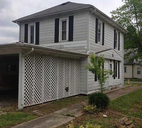 Nice 2 story home in beautiful Scottsburg. Home set on corner lot with 2 bedroom upstairs, and a bath, living room and kitchen downstairs. Home also has carport.