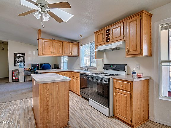 Roomy Munds Park manufactured home with lots of room to spread out. Large kitchen with panty, a bonus room/den, large kitchen and two dining areas in addition to 3 other bedrooms. Split floor plan. Three storage sheds in the fenced back yard give you lots of room for those toys.
