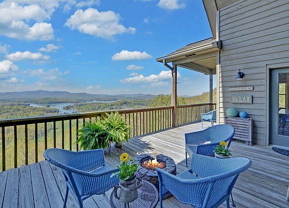 On top of the world!!! Fabulous location with spectacular panoramic views of Lake Chatuge, pastural area, and mountains. Lots of deck/patio space with gas fire pit , oversized two car garage, great room with cathedral wood ceilings, gas oven. Two bedrooms on main level and three extra rooms on walk-out terrace level. NEW Tankless water-heater. Mandatory Sports Membership is $450 and the POA fee was just reduced this year to $1500.