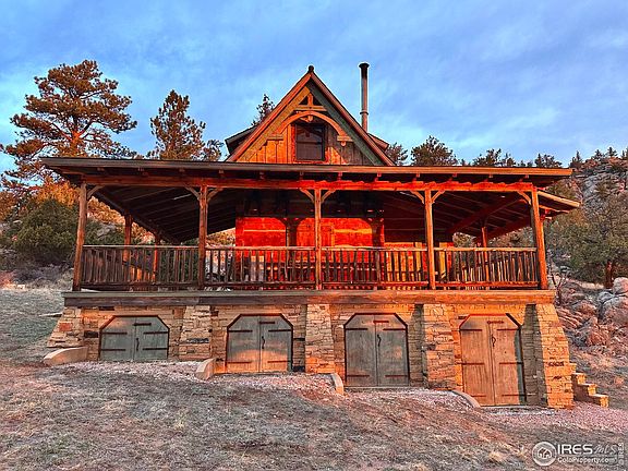 Mountain top Appalachian Square Hewn Log Cabin overlooking Rabbit Creek valley & Snowy Range Peaks. Artisan built from the hinges to the Vermont slate rooftop. Custom built doors, wide plank ash floors, bath with claw foot tub, sink & incinerator propane toilet. One main living area / kitchen with fireplace, Home Comfort wood fired stove / oven, plus cast iron propane 2 burner stove top and propane refrigerator. 2 propane wall heaters, solar (300w) setup for lights and wifi. AT&T & Verizon in the area. 504 sq ft covered Brazilian hardwood covered deck, seasonal spring, 500 gl cistern, 35 beautiful acres. Seasonal access.