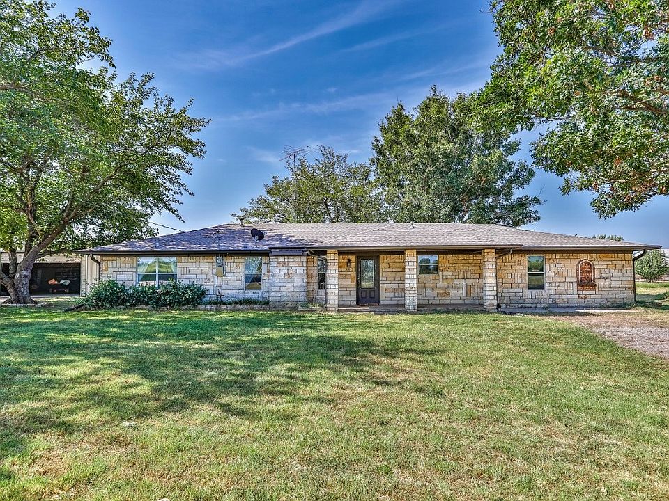 Location, Location, Location. Don't miss this 13-acre equine property in the heart of north Texas horse ranch properties. This working equine ranch is the perfect opportunity to get in and have a turnkey equine operation ready to go. With open pastures fenced and cross fenced, the outdoor training arena is set up with roping chutes, a return alley, and holding pens. There are turnout pens for livestock behind the arena, a covered riding pen, a 20-stall main show barn equipped with an office, multiple large tack rooms, bathroom and shower set up, and plenty of usable storage. The second horse barn is set up with 6 stalls and a large storage workspace for ranch needs. The property is complete with a ranch style house of stone and brick, 4 bed 2 bath, with open kitchen living room concept.