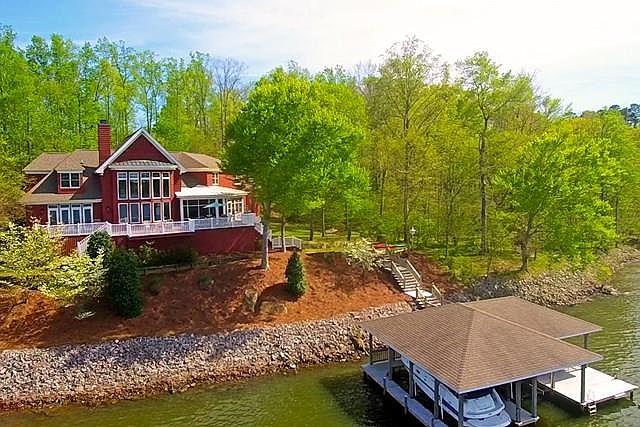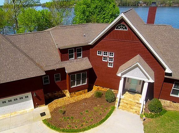 Panoramic main lake views, premium lot, custom architectural design and custom-built quality combined! Sunsets and miles of unobstructed views! Strong rental history for investors.1 1/2 story Contemporary lake house projects beauty. 1st Level: Spacious & open. Great room with a spectacular floor-ceiling bay window. Majestic stone fireplace that towers to a tongue-and-groove cathedral ceiling with custom trusses. Reclaimed heartwood pine floors. Dining area flows into center island kitchen w/ granite & custom cabinets. Keeping room. 1/2 bath, laundry room and mud room adjoin. Screened porch. Huge deck. Luxurious king master suite w/ lake views. Dbl attached garage. 2nd level: 2nd master suite w/ bath, 3rd BR, full hall bath, 2 undesignated rooms w/ one having private entry. Dbl boathouse and easy walkway, in deep water. Gently sloped lot on cul-de-sac. Gated community. VIRTUAL TOUR!!