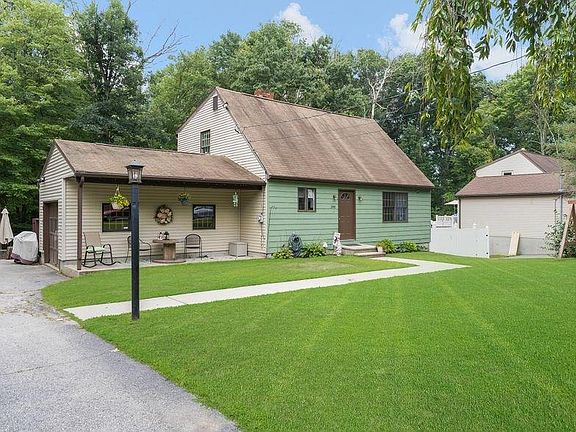 Inviting Cape Cod offers plenty of natural light, a great layout, generous size bedrooms and closets. Finished basement with walkout has chimney floor for pellet on wood stove. Three bedrooms and two full baths. Front and back yards and beautiful and deck overlooks from full length of rear of the house. Attached 1 car garage. Professional photos coming soon.
