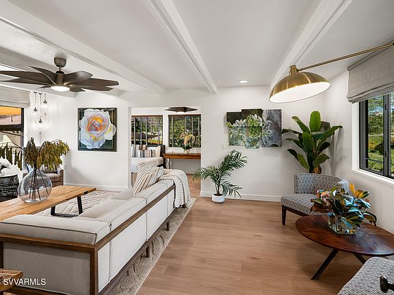 PRIVACY-Rich West Sedona charmer is what Sedona Life is about. Located on a large corner lot parcel in an abundant tree-canopied street, this NO HOA residence could easily be featured in Home & Garden Magazine. NEW Floors, NEW Bathroom upgrade, and NEW Fireplace surround. Enough room for the whole family with FIVE Bedrooms and three bathrooms. *Note ALL bedrooms are private with no common shared walls; all bedrooms with vestibule entries. Casita SOLD fully furnished, NEW Kitchen in Casita 8/2022. This home is a dream with nearly 3000 square feet, 4 bedroom/2 bath main house, and 1 bedroom 1 bath guest residence. Exposed beams, old-growth trees, and a retreat-style landscape. Located in the heart of West Sedona. Main House is 2253 Square Feet, Guest Residence is 642 SF