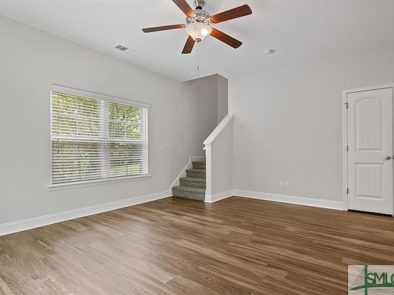 Beautiful Townhome located in Creekside Community at Richmond Hill. Move in ready 3 bedroom, 2.5 baths barely lived in second home. As you enter the home you will find a spacious living room with a side sliding door out to the Patio overlooking private wooded back and side yard. Main Suite upstairs with trey ceiling and walk in closet, garden tub and New Coastal style King Size Bed and Flat Screen T.V. that stays with the sale of the home. The additional two bedrooms have generous closet space and all windows have blinds. The garage is single car with auto opener. Community Pool, Playground and Fitness Center for entertainment. Close to Hwy 17 and I95 easy commute to Savannah City Center, Ft Stewart, Hunter, Pooler, Airport and Gulfstream. Convenient to schools, shopping and entertainment Do not miss out on this rare end unit townhome.
