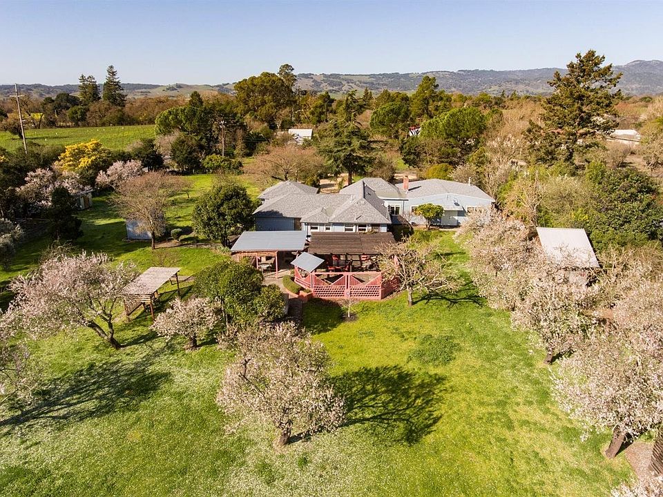 Close to downtown Sonoma, and only a short distance to a handful of world renowned wineries. This beautiful mid century ranch home on 1.85 acres offers 2,112 sq. ft. of comfortable living space with three bedrooms, two and a half baths, an updated central heat and AC system, and a 950 sq. ft. attached garage/shop. Features include a 2,000 sq. ft. outdoor BBQ area, 320 sq. ft. steel storage structure with freezer room and car port, 400 sq. ft. animal shelter with fenced gated areas, poultry aviary, and a custom built smoke house. Direct access to both Leveroni Rd. and Harrington Dr. adds to the multiple uses of this unique property. Plenty of usable space and multiple outbuildings make this the perfect property for gardening, a vineyard, second dwelling, office, gym or pool & outdoors entertainment area. Vacation Rental Eligible per Sonoma County.