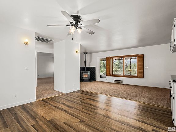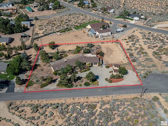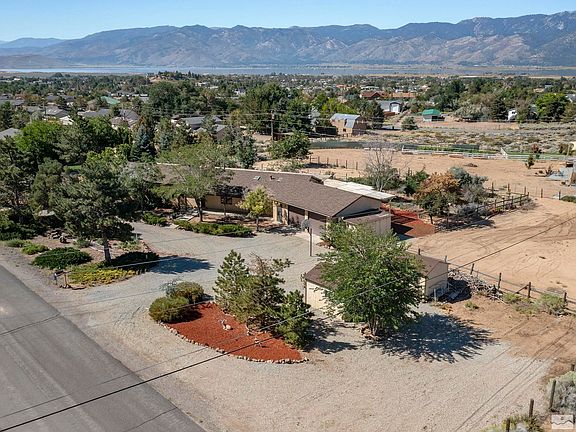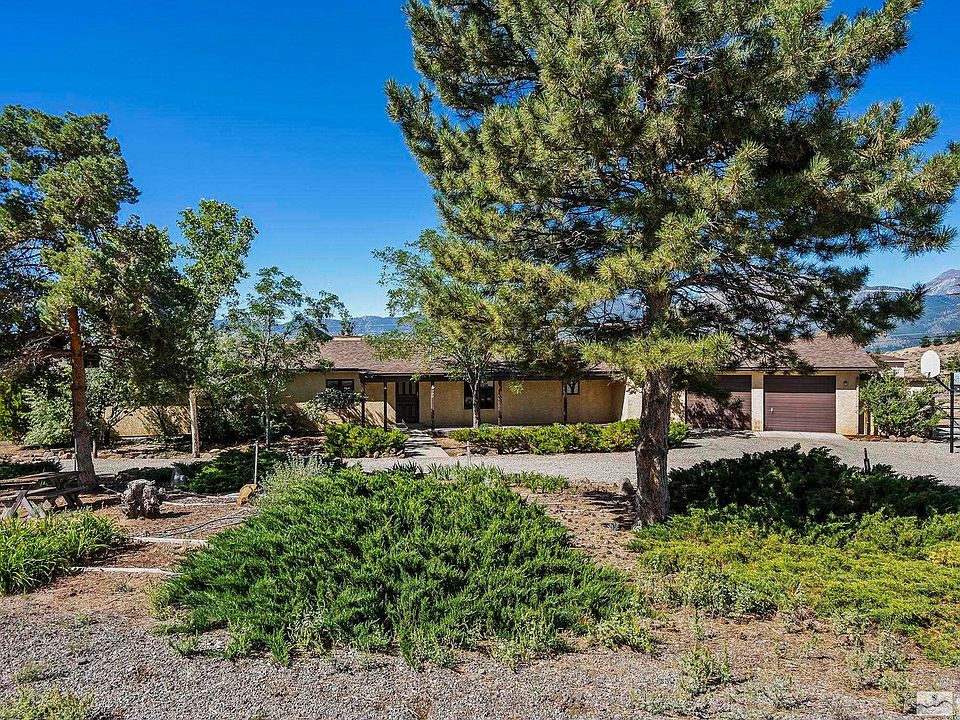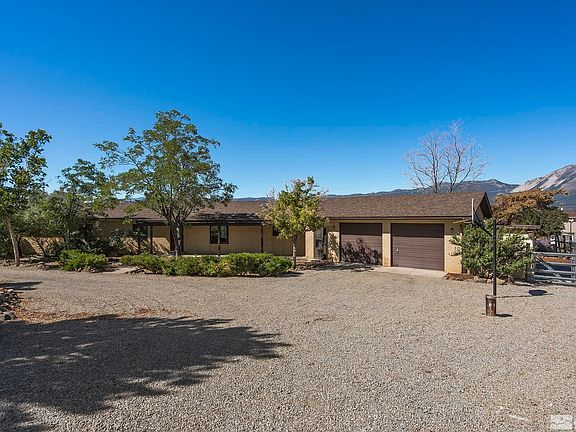 This spacious ranch-style home on 1.14 acres offers stunning views of Slide Mountain, Washoe Lake, and Washoe Valley. Seller upgrades include new kitchen and bath sinks, a range, dishwasher, kitchen lighting, fresh paint, flooring, well pump, and water lines. A mudroom connects to the 2-car garage, and there's a large breezeway/courtyard. The property is landscaped with plants and trees, perfect for horses and close to BLM riding trails. The roof was new in 2017, and there are two sheds with power.